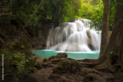 © Aunging, Obraz premium Krajobraz Wodospad Huai Mae Kamin Srinakarin Dam w Kanchanaburi, Tajlandia.