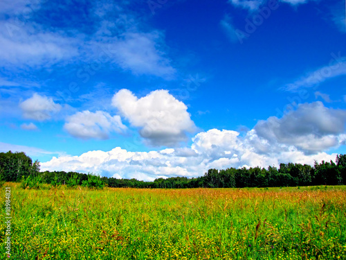 © Sabphoto, Obraz premium krajobraz z zielonymi polami i lasem