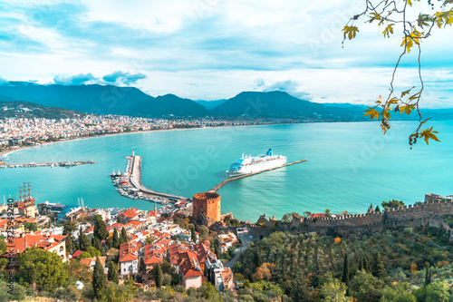 © GeniusMinus, Fototapeta premium Krajobraz zamku Alanya w Antalyi