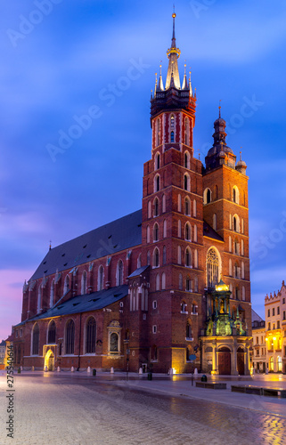 © pillerss, Naklejka premium Krakow. Market square in the night lights at sunrise.