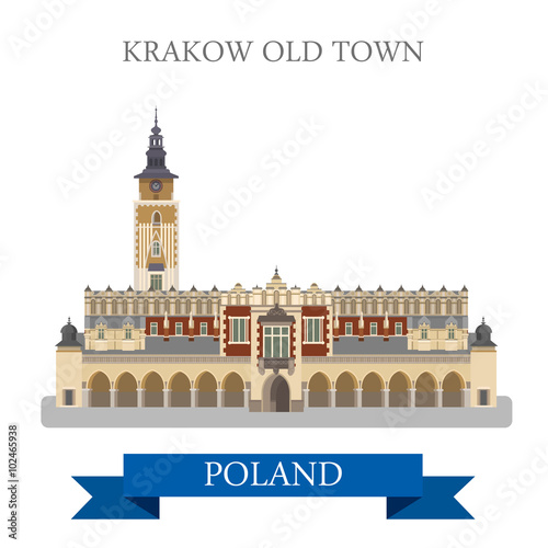 Obraz premium Krakow Old Town Poland Europe flat vector attraction landmark