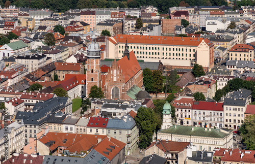 Obraz premium Krakow, Poland, aerial view of the Corpus Christi church in the Kazimierz...