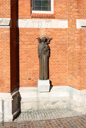Naklejka premium KRAKOW, POLAND - MAY 10, 2022: A statue by St. Joseph Church a historic Roman Catholic church in Podgorze district of Krakow, Poland.
