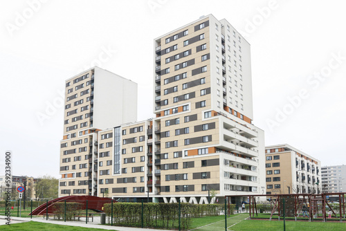 © agneskantaruk, Fototapeta premium KRAKOW, POLAND - MAY 01, 2021: Modern apartment buildings in Krakow, Poland.