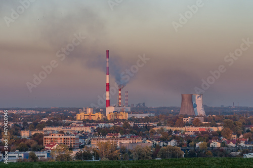 Fototapeta premium Krakow, Poland, smoke from coal power plant