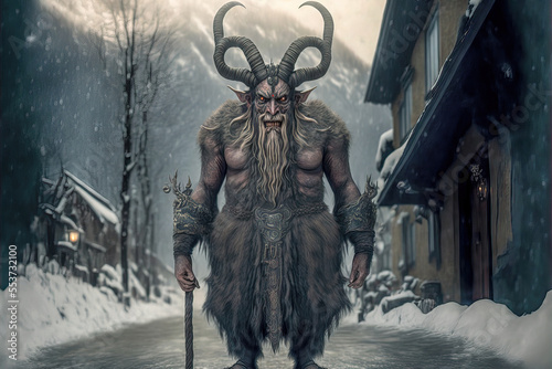 © Korea Saii, Fototapeta premium Krampus Krampusbrauch Schimmelreiter Krampuslauf in Bayern Österreich Tschchien Erstellt durch Generative AI AI Art Digital Art Illustration