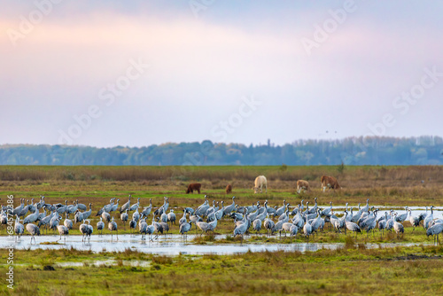 Fototapeta premium Kraniche auf den Wiesen am Pramort.