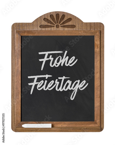© Zerbor, Obraz premium Kreidetafel mit der Beschriftung Frohe Feiertage