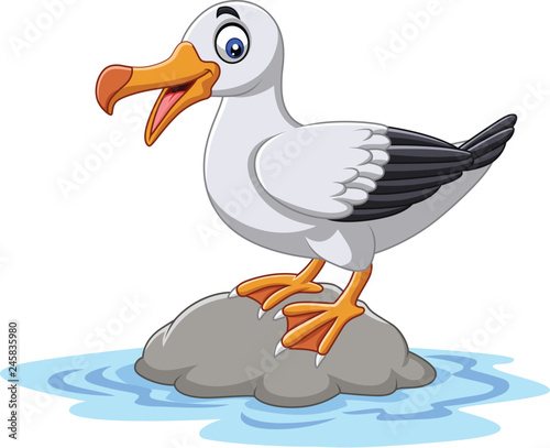© tigatelu, Naklejka premium Kreskówka ładny ptak albatros stojący na skale