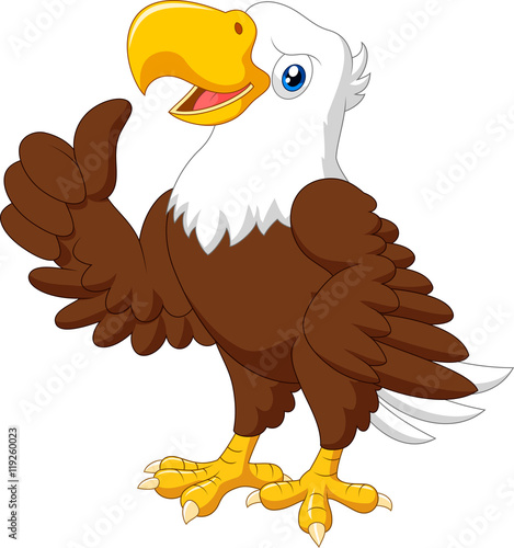 Naklejka premium Kreskówka śmieszne orzeł daje kciuk do góry
