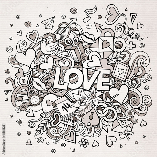 © balabolka, Fototapeta premium Kreskówka wektor ręcznie rysowane ilustracji Doodle Love