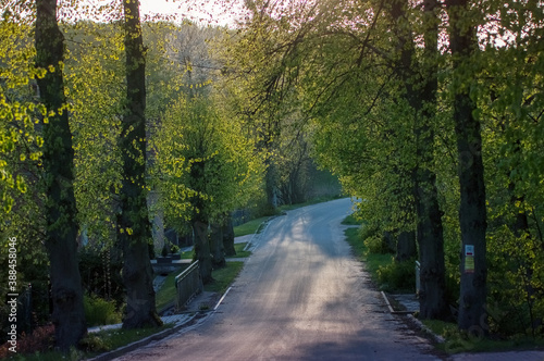 © Monika, Obraz premium Kręta droga asfaltowa wśród rosnących drzew