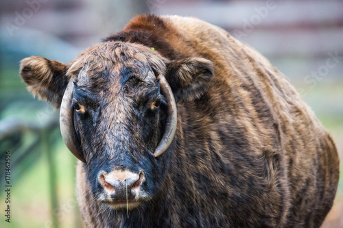 Fototapeta premium Kreuzung von Wisent und Rind, Białowieża-Urwald im Herbst