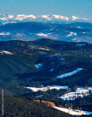 © honza28683, Obraz premium Krivan in High Tatras and Western Tatras mountains from Lysa hora hill in winter Moravskoslezske Beskydy mountains in Czech republic