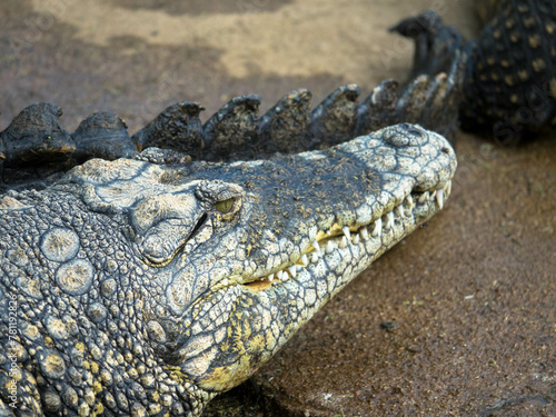Obraz premium Krokodyl w niewoli. Skóra krokodyla pochodząca z fermy. Przemysł skórzany....