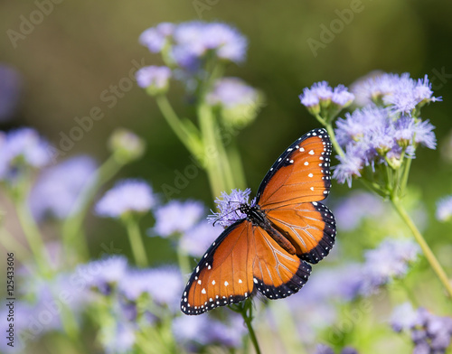 © leekris, Obraz premium Królowa motyli (Danaus gilippus) żerująca na mglistych kwiatach Greggsa