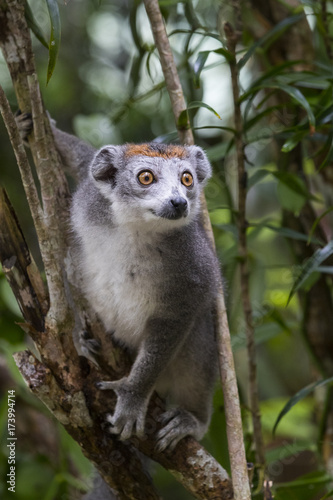 © aussieanouk, Obraz premium Kronenmaki haelt Ausschau nach Artgenossen