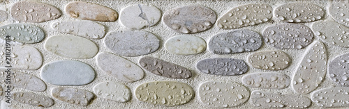 © beachfront, Fototapeta premium Krople wody na kamyczkach w kabinie prysznicowej