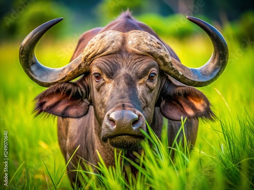 © prapatsorn, Fototapeta premium Kruger National Park African Buffalo Close-up Grazing Horizontal Stock Photo