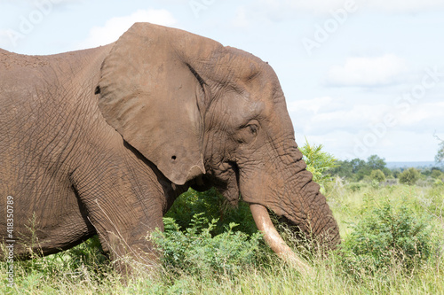 Obraz premium Kruger National Park: elephant grazing on lush summer growth