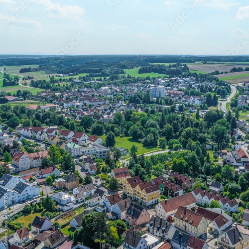Fototapeta premium Krumbach in Mittelschwaben, Blick über die Stadt nach Südwesten