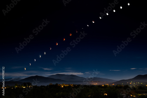 © dfikar, Fototapeta premium Krwawy Księżyc / Zaćmienie Supermoon nad Santa Fe