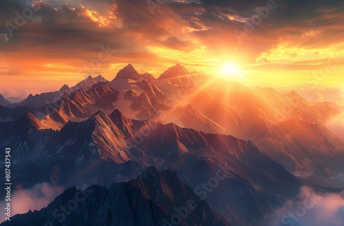 © Punn, Fototapeta premium KSBeautiful misty valley at sunrise aerial view of mount