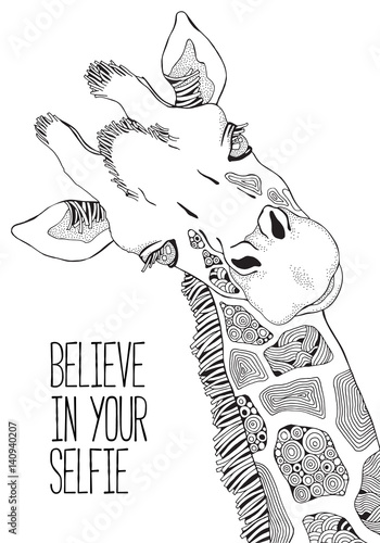 © ImHope, Obraz premium Książka do kolorowania dla dorosłych i dzieci. Żyrafa