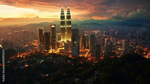Obraz premium Kuala lumpur city skyline at dusk, Kuala lumpur Malaysia, generative ai