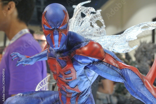 © Aisyaqilumar, Obraz premium KUALA LUMPUR, MALAYSIA -APRIL 7, 2018: Selected focused of Marvel Comic action figure called Spider-man 2099. Futuristic Spider-man character. Action figures displayed by collector.