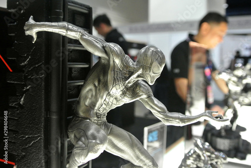 © Aisyaqilumar, Obraz premium KUALA LUMPUR, MALAYSIA -APRIL 7, 2018: Selected focused of Marvel Comic action figure called Spider-man made from pewter metal. Luxury action figure for the collector and normally be the special souve