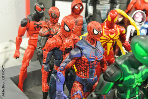 © Aisyaqilumar, Obraz premium KUALA LUMPUR, MALAYSIA -MARCH 31, 2018: Selected focused of Marvel Comic action figure call Spider-man. He was one of the Avengers team. Action figures gather together by the collector.