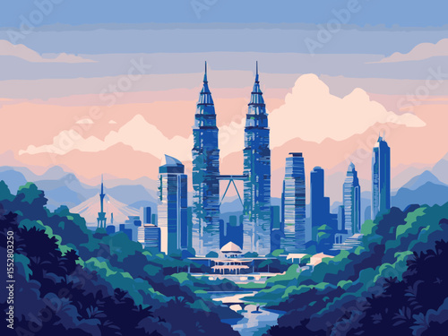 © StockStudio, Obraz premium kuala lumpur malaysia petronas tower vector illustration