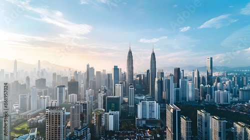 © AgungRikhi, Obraz premium Kuala Lumpur Skyline at Sunset with Twin Towers
