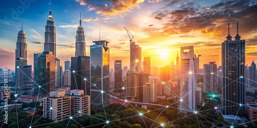 Naklejka premium Kuala Lumpur Skyline, Digital Network Connection, Smart City, Technology, Future