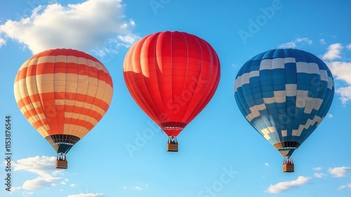 Naklejka premium Kubernetes backup heic Martech saas Mlops Esg fintech Thumbnail Telegram channel 1440 Daily Digest Second state Wefunder Colorful striped hot air balloons floating in blue sky with white clouds, trav