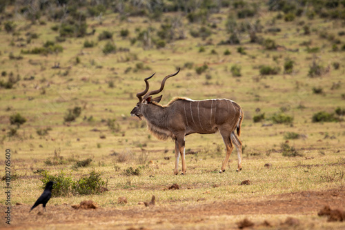 Naklejka premium Kudu grazing in the grassland of Addo