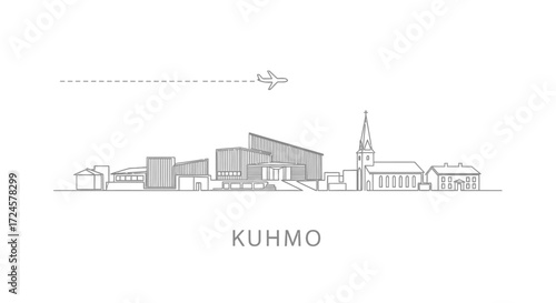 Obraz premium Kuhmo Finland Skyline Outline with Airplane