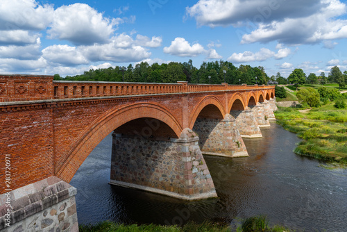 © Nikolajs Selusenkovs, Fototapeta premium Kuldiga Old Bridge-the widest waterfall in the Baltics on the River Venta and Ventas Rumba Waterfall
