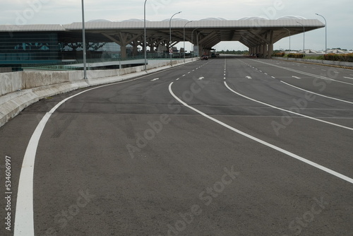 © Bari, Fototapeta premium Kulonprogo, Indonesia, Dec 6, 2021. The access road to drop off area of Yogyakarta international airport which looks deserted.