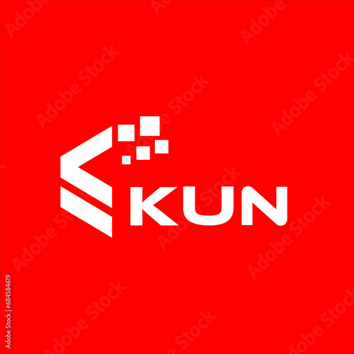 © Abdullah, Fototapeta premium KUN letter technology logo design on red background. KUN creative initials letter IT logo concept. KUN setting shape design
