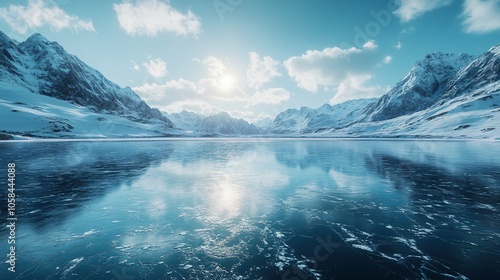 Fototapeta premium Kunlun Mountains in Snow, Scenic Self-Drive Journey through Winter Wonderland, Natural Beauty and Majestic Landscapes