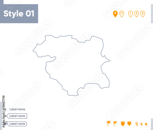 Fototapeta premium Kurdistan, Iran - stroke map isolated on white background. Outline map....