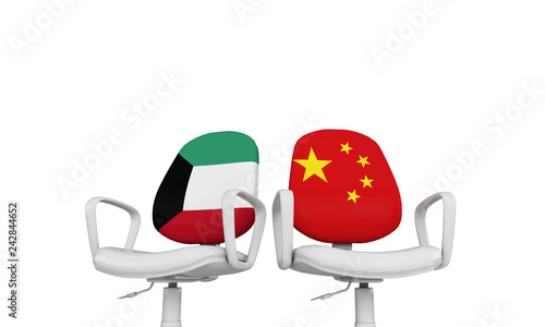 © ink drop, Fototapeta premium Kuwait and China business chairs. International relationship concept. 3D Rendering