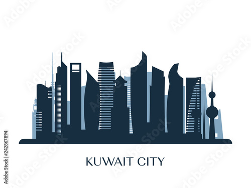© greens87, Fototapeta premium Kuwait city skyline, monochrome silhouette. Vector illustration.