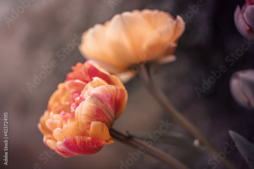 Naklejka premium Kwiat pomarańczowy, tulipan, rozmyte tło