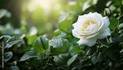 © Monika, Fototapeta premium Kwiatowe tło z białą różą