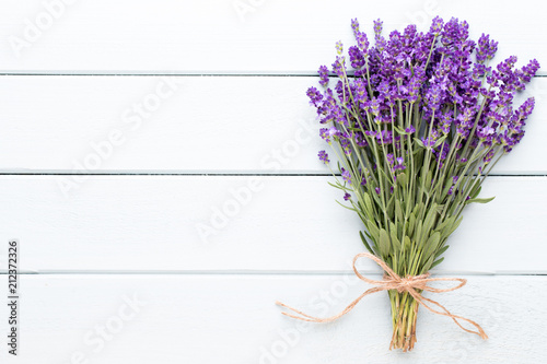 © gitusik, Fototapeta premium Kwiaty lawendy, bukiet na tle rustykalnym, narzut.