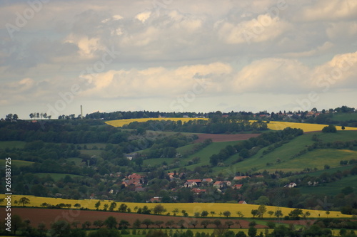 © Dynamoland, Obraz premium Kwitnące pole rzepaku w Saksonii w Niemczech