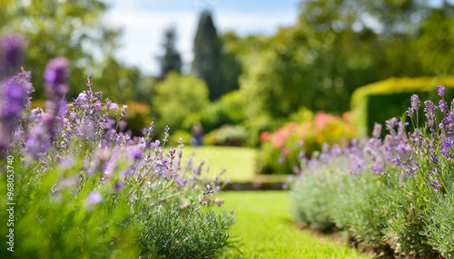 Naklejka premium Kwitnący ogród z lawendą